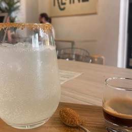 Espresso, agua con gas, limón, agave y azúcar moreno.