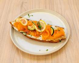 Queso crema, cebollín, aguacate, salmón, pistacho troceado y eneldo