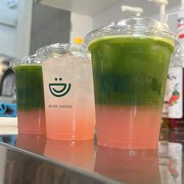 Matcha, limón, agua con gas, sirope de sandia y agave.