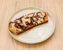 Tomate rallado, virutas de jamón ibérico, parmesano y AOVE