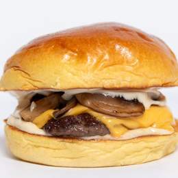 Simple smash burger, cheddar, champiñones y mayo trufada en pan brioche