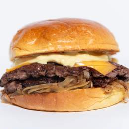 Doble smash burger, cheddar, cebolla a la plancha y salsa Oklahoma en pan brioche