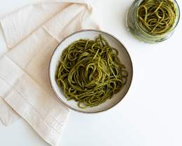 Albahaca fresca, aceite de oliva extra virgen, ajo, queso parmigiano reggiano 24 meses y piñones
