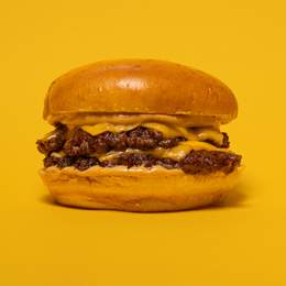 FAT SMASH, QUESO AMERICANO, BACON, CEBOLLA CRISPY, SALSA MAYO TRUFA