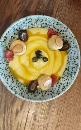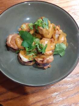 Con salsa de curry y mermelada de tomate picante. 1 unidad.