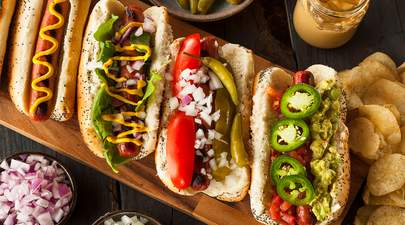 Deléitese con una delicia sabrosa con nuestro sándwich con salchicha jugosa, tocino crujiente y queso derretido. ¡Una deliciosa fusión de sabores!
