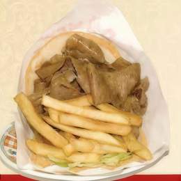 2 kebab pan de pita con carne de ternera pollo o mixto y lechuga tomate cebolla y salsa.platos carne de ternera pollo o mixto combinado patata y salsas