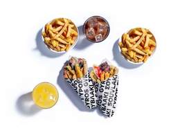 ¡Disfruta nuestras patatas fritas servidas con tu salsa favorita!