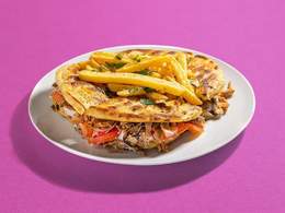¡El galardonado queso griego de Messinia, recién pasado por la parrilla! Imagina un Halloumi con una textura más suave, matiz mentolado, terminado con un toque de orégano y limón. Servido en nuestro pan pita griego artesanal y la salsa que prefieras.