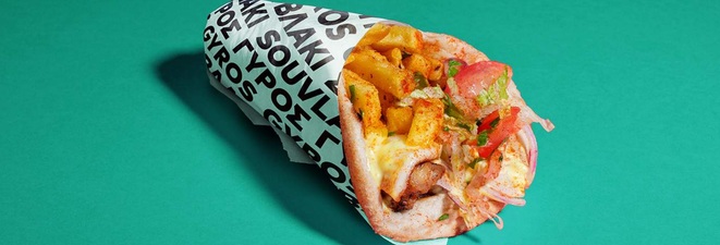 ¡Elige tu gyros wrap favorito y disfrútalo con un entrante gratis! Envuelto en nuestro delicioso pan pita griego artesanal, con lechuga, tomate, cebolla, perejil y la salsa que prefieras. Con Patatas y bebida