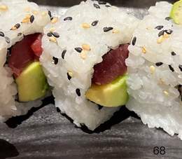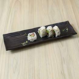 4 uramaki salmón, 4 uramaki atún, 4 uramaki pollo frito y 4 uramaki eviten