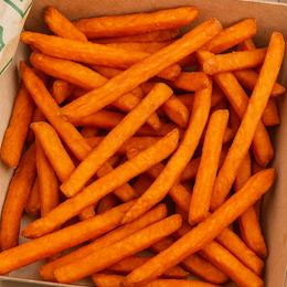 Hamburguesa de carne vegana con patatas paja crujientes, queso cheddar vegano y mayonesa de chipotle. Servida con papas fritas caseras con sal y romero o ensalada verde aliñada