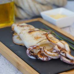 Tomate trinchado, cebolla y capellán (aceite,vinagre,sal)