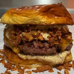 Mayo bacon-cebollino, Carne, Cheddar y Cebolla crujiente