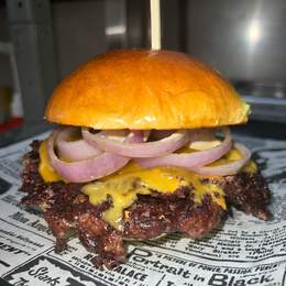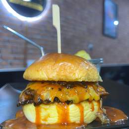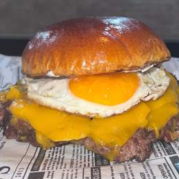 Doble smash burger, doble queso cheddar, huevo frito y mayo trufada