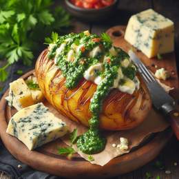 Elige tu base preferida pollo o ternera. con abundante queso azul