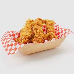 3 Tiras de pollo súper crujiente acompañadas con salsa sweet chili