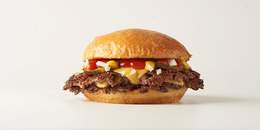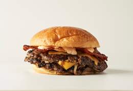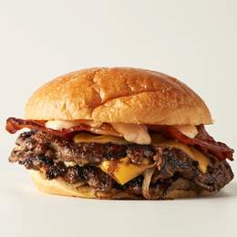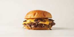 Doble hamburguesa de ternera, cebolla plancha incrustada (estilo Oklahoma)(toque mostaza) y doble cheddar