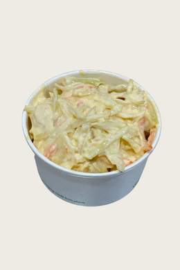 Pollo súper crujiente, ensalada de col, pepinillos y mayonesa