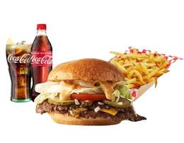 Special Oklahoma Burger + French Fries + Bebida. **Las burger en combo no se pueden modificar ni por alergia, solo se modifican las burger sueltas