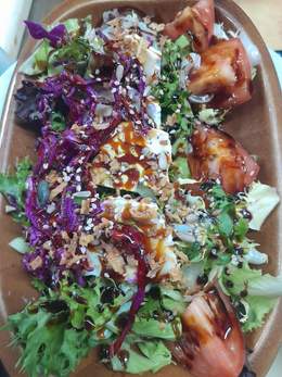 Deliciosa Merluza rebozada con panko. Acompañada de patatas y mayo japo. Elaborada al momento
