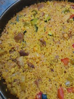 Con magro, alcachofas, pimientos, calabacin, ajos tiernos, garbanzos..