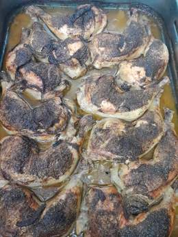 Muslo-contramuslo asado al horno con vino blanco y especies