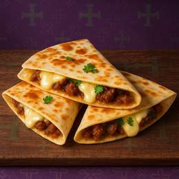 Quesadilla de ternera deshilachada, queso, cilantro opcional y porción de queso (3 uds.)