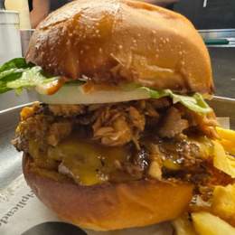 100% ternera. Doble patty con queso arzua. Pan brioche casero.