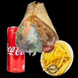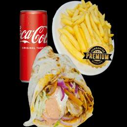 pan rustico de hamburguesa,carne mixto kebab,lechuga,cebolla y salsa yogur+fritas+lata