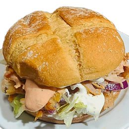 Pan rustico hamburguesa, carne mixto kebab,lechuga,cebolla,salsa yogur