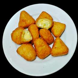 REBOSADO CON MASA Y DEENTRO ES QUESO. CON UN SABOR QUE TE VAS A CAER LA BABA CON PRIMER MORDISCO.