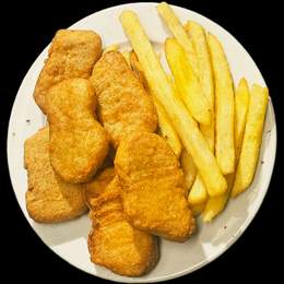 NUGHTS CON PECHUGA DE POLLO Y REBOZADO Y CON PATATAS