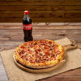 Elige tu pizza mediana favorita y un refresco por solo 16,95€.