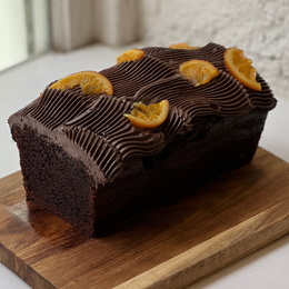 Budín de naranja y chocolate con topping de ganache de chocolate