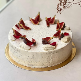 Bizcocho de vainilla y amapolas, relleno de crema de amapolas y mermelada casera de higos.