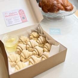 Docena de medialunas de La Capke para disfrutar todas las mañanas. Incluye el almíbar e instrucciones para terminar la cocción y disfrutarlas recién sacadas del horno!