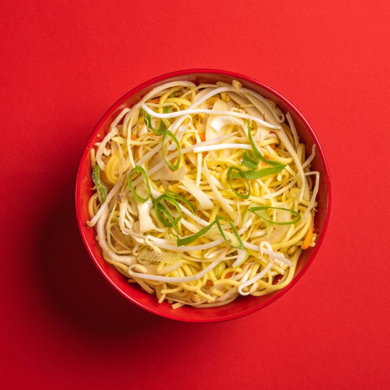 Noodles de huevo salteados con huevo revueltos, mix de pimientos, cebolla roja, nuestra salsa secreta de chow-mein, topping de sésamo mix y la proteína a elegir.