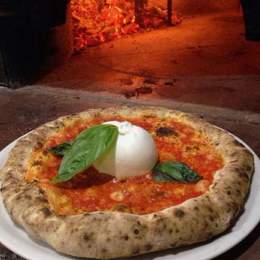 Mozzarella, tomate san marzano y albahaca fresca y rúcula.