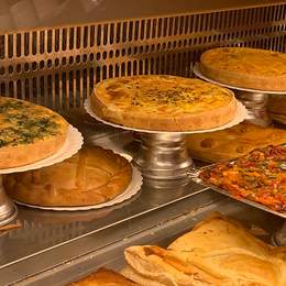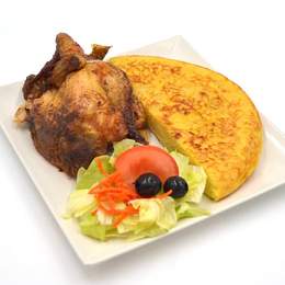 Con torta de tortilla de patata, croissant salado, torrezno, zumo natural o refresco, café con leche, saladitos, miel de la alcarria
