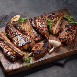 Costillas asadas al estilo peruano, condimentadas con una mezcla de especias que resalta los sabores tradicionales del Perú
