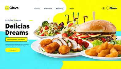 Patatas fritas y salchicha, acompañadas de ensalada y una variedad de cremas