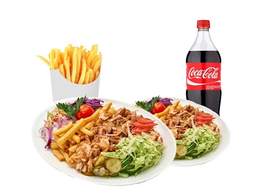 3 kebab, 1 refresco 2l Coca Cola y 1 patatas