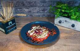 Crema de quesos y tartufata horneados con queso fundido acompañada de nachos para dipear. Amantes de la trufa, este es vuestro plato.