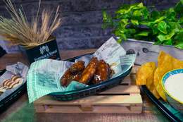 Alitas de pollo caseras de buen tamaño con un rebozado muy crujiente y terminada con algunas de nuestras tres salsas. Puedes escoger entre Teriyaki,BBQ y/o Búfalo y te chuparás los dedos.