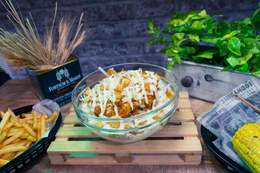 Tiras de pollo súper crujientes sin hueso acompañadas de nuestra salsa bbq.