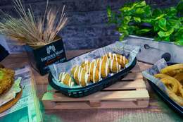 Dos carnes de ternera de 120 gramos aplastadas en la plancha acompañadas de tres fingers de queso frito y cebolla caramelizada en nuestro pan brioche. Nuestra opción smash, una gran opción.