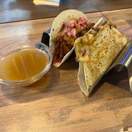 QUESADILLA A BASE DE POLLO CON NUESTRA MEZCLA DE QUESOS FUNDIDA Y NUESTRA SALSA CASERA DE HONEY-CHIPOTLE.