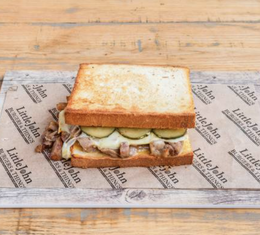Croissant Dani Cremita, dos pattys Smash de 85 gramos cada una de nuestra carne de vaca seleccionada por Jose Rosa, Doble queso Cheddar, Doble Bacon, Bacon Crumbles, cebolla a la plancha, pepinillos y nuestra Salsa Hot&Sweet Smash