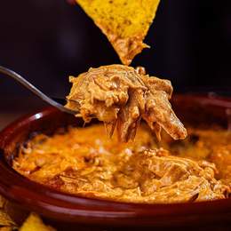 Pollo cocido desmenuzado mezclada con salsa búfalo y un toque de salsa ranch